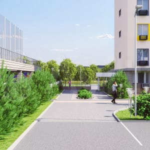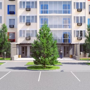 - Благоустроенный двор с комплексным озеленением, детские и спортивные площадки