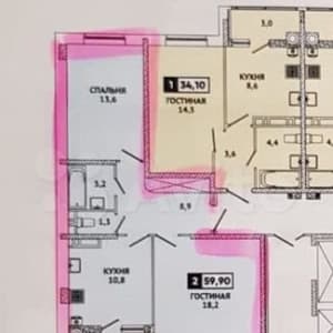 - Комнат в квартире: 2