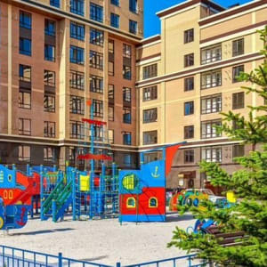 Для комфорта новоселов в новом доме предусмотрены вместительные кладовые и подземный паркинг, а для малышей - благоустроенный двор с игровой площадкой. Первый этаж дома занимают коммерческие помещения, которые подходят для создания профильных магазинов, детских студий, кафе.
