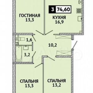 В литере 14/1 ЖК “Российский” продается 3-комнатная квартира площадью 74,6 кв.м. с предчистовой отделкой.